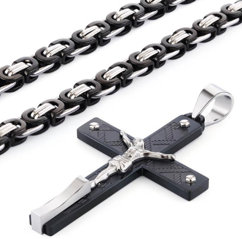 Item Type: Necklaces Fine or Fashion: Fashion Chain Type: Link Chain Style: Punk Necklace Type: Pendant Necklaces Compatibility: All Compatible Pendant Size: 6.3*4.1 CM 2.48*1.61 Inch Metals Type: Stainless Steel Gender: Men Material: Metal Shape\pattern: Cross Function: decoration Name: Jesus Cross Necklace Set Metal Color: Gold/Black Pendant Weight: 20g Necklace Weight: 55g Necklace Length: 55 CM 21.65Inch Necklace Width: 6mm Technology: Mirro Polish For: Men/Father/Son/Friends/Male/Yourself Condition: High Quality Brand New