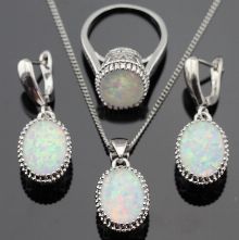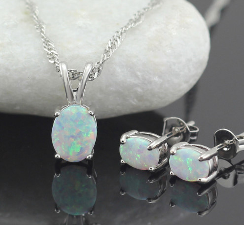 Free Gift Box White Fire Opal Women Jewelry Sets
