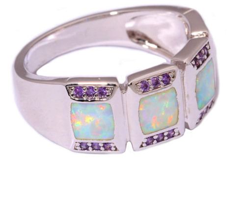 Item Type: Rings Fine or Fashion: Fashion Material: Stone Gender: Women Shape\pattern: Geometric Metals Type: Copper Occasion: Party Setting Type: Prong Setting Style: Trendy Surface Width: 9mm Rings Type: Wedding Bands Function: Fashion Jewelry Compatibility: Fashion Jewelry Gem Color: White & Purple Stone & Size: White Fire Opal & Amethyst Quantity: 1 Pcs Ring ENVIRONMENTAL STANDARDS: Europe & Nickel Lead Cadmium free