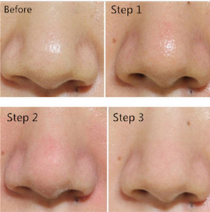 Step 2: Wet nose, out of every two flour paste paper will tear down the transparent pink face affixed to the nose(Note:the one with the place, do not move), 10-15 minutes until completely dry after the nose paste slowly peeled off.