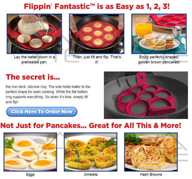 Easily prepare perfect pancakes with the Flippin' Fantastic Nonstick Pancake RingBest results when rings lay flat on cooking surfaceNonstick surface