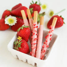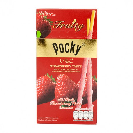 Strawberry Flavored Pocky Sticks Biscuit Stick coated with Strawberry Cream and real Strawberry Flakes.