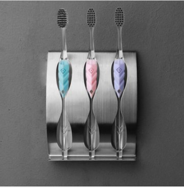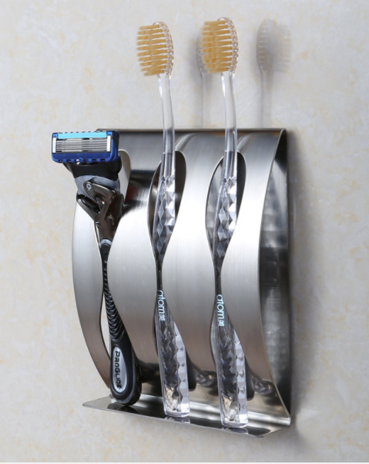 This toothbrush holder is made of stainless steel and it can hold about 3pcs toothbrushes.
