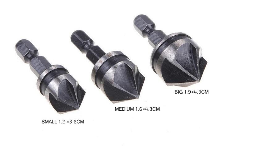 3pcs/set 90 Degree 1/4 Hex Shank Drill Bit 5 Flute 12-19mm for Woodworking Item specifics Brand Name: NEWONE DIY Supplies: Woodworking is_customized: Yes Model Number: HL-120502 Material: High Carbon Steel Length: 12mm 16mm 19mm Shank diameter: 6.35mm(1/4 inch) Packaging Details Unit Type: Set Package Weight: 0.12kg (0.26lb.) Package Size: 15cm x 15cm x 10cm (5.91in x 5.91in x 3.94in)