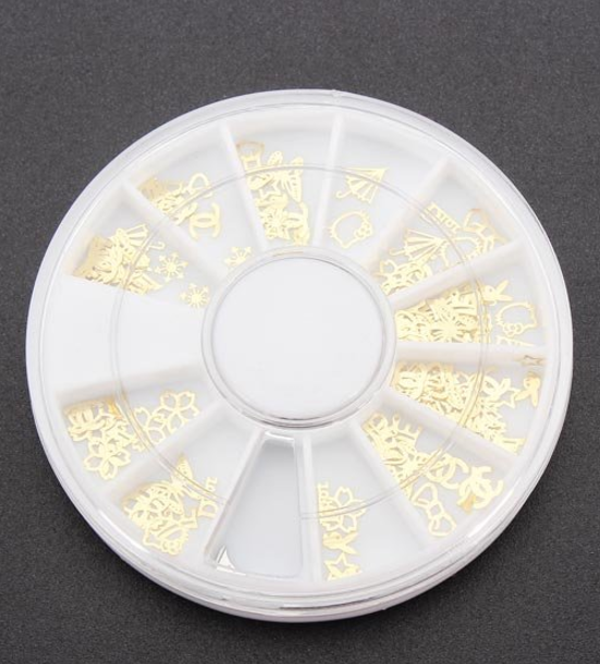 3D Nail Art Gold Metal DIY Sticker Design Wheel