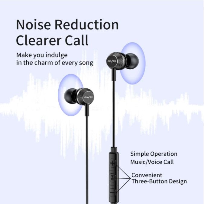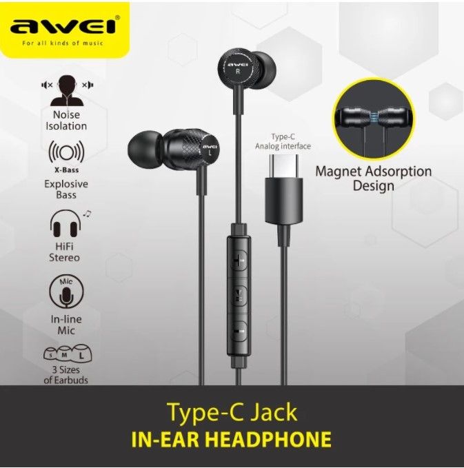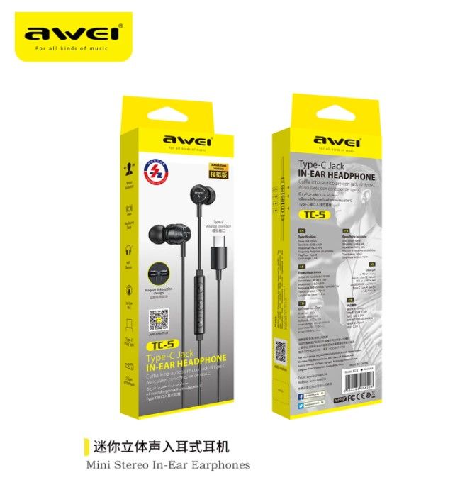 AWEI Wired In Ear Earbuds USB Type C Plug Stereo Headphones HiFi Bass Sound Headset with Built-in