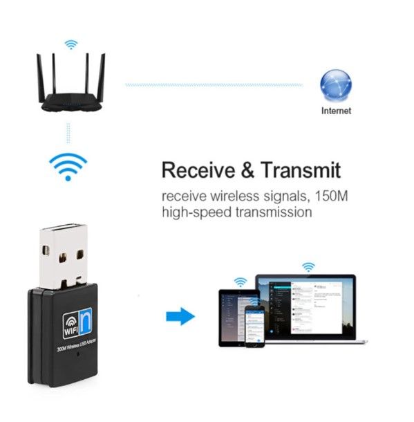 Mini 300Mbps WiFi Adapter - Wireless Network Card (Updated)