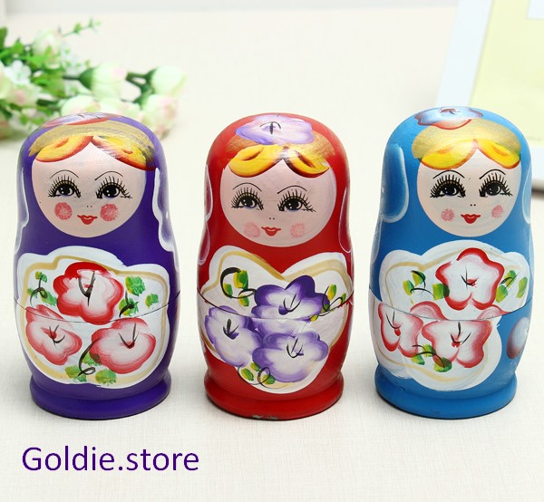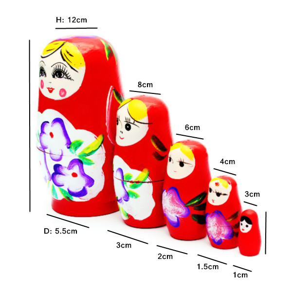 These dolls are not only fun toys,but also good decoration. Hand carved and hand painted. It consists of 5 dolls, all smaller dolls are entering into bigger ones. Even the smallest one is delica. Material: Wooden Color: Red,purple,blue Height: largest:12cm smallest:3cm Bottom diameter: largest:5.5cm smallest:1cm Weight:154g Age appropriate: children over 5 years old and adults Package include: 1 Set(5 pcs) Wooden Matryoshka Doll