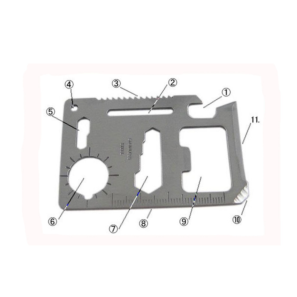 Features: 100% Brand new and high quality 402 Stainless Steel material Best choice for outdoor camping and hiking survive sports Small and easy to carry, easy to use Color:Silver Size:5.7 x 3.7 x 0.2cm Functions:Opener, Wrench, Screwdriver, Scraper, Ruler, Holes, Direction discriminator Package Included: 1 x Outdoor Multifunction Stainless Steel Card EDC Tool