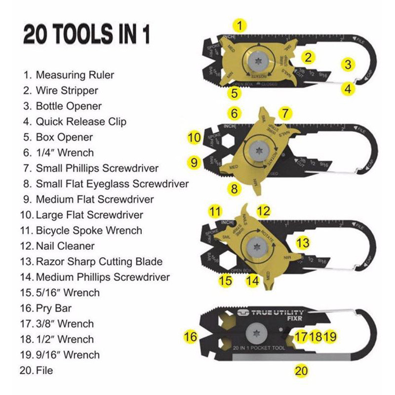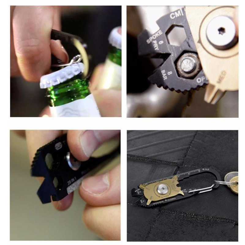 Mini 20 In 1 Outdoor Multi Tool Stainless Steel Keychain Key Hanging Bottle Opener Nail Puller Screwdriver#YL