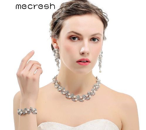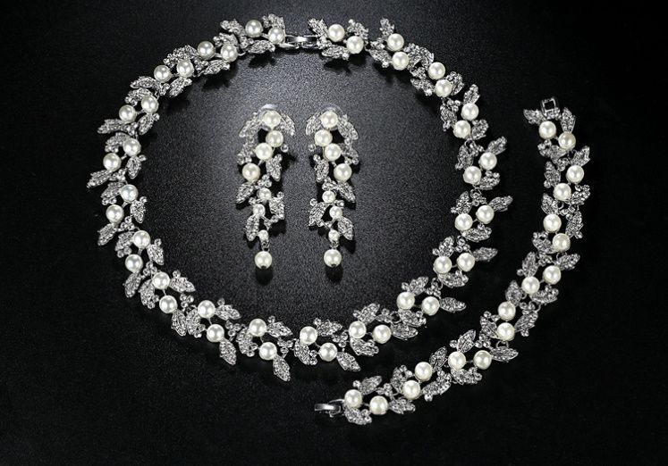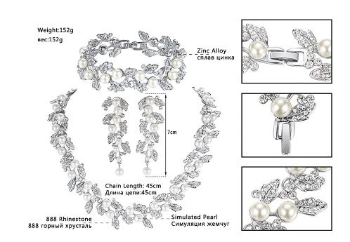 Item Type: Jewelry Sets Fine or Fashion: Fashion Shape\pattern: Plant Included Additional Item Description: 3 Pcs (1pcs Necklace/1 pair Earrings/1pcs Bracelets) Jewelry Sets Type: Bridal Jewelry Sets Style: Trendy Occasion: Wedding Pearl Type: Simulated-pearl Metals Type: Zinc Alloy Material: Pearl Gender: Women Material : Simulated Pearls, Crystal,Rhinestone Shape: Leaf Shape is_customized: Yes Color: Silver/Gold-Color Package: Bubble envelope Shipping: Free Shipping