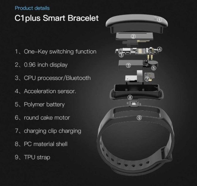 Main functions: 1. Time: displays the current time 2. Step counting: It shows that the movement counts steps, and the movement is more efficient 3. Heart rate: Monitor the current heart rate and accurately monitor it in real time 4. Mileage: display step mileage 5. Heat: It shows the heat of exercise 6. Electricity quantity: display the current electricity quantity 7. Bluetooth intelligent reminder: 8. Alarm clock reminder: monitor the whole process of sleep, and wake up the alarm clock 9. Call reminder: Vibration reminder, don't miss important calls 10.APP message vibration reminder: When the mobile phone receives SMS. When you are notified by APP such as WeChat, let you know the important notice in time and don't miss it 11. Sleep monitoring: monitor sleep quality at night 12. waterproof: strong IP65 waterproof. Specifications: 1.Features: continuous heart rate, remote care, family sharing real-time data 2.Main features: automatic wrist cutting screen, wearable hardware + smart APP + big data cloud service to wear, through APP control, display, record, real-time data synchronization to the cloud to monitor physical health changes, display risk status and evaluation results" 3.Main features: continuous heart rate, step counting, calories, distance, sleep monitoring, call reminder, alarm reminder, hand-on bright screen, social sharing (WeChat, QQ, Facebook, Twitter) shake the photo" Package Included: Bracelet*1 Instruction Manual*1