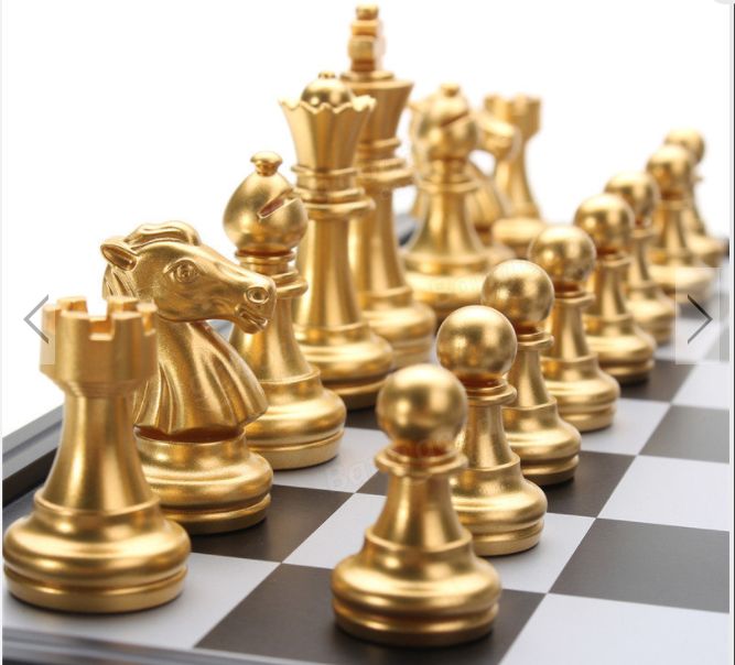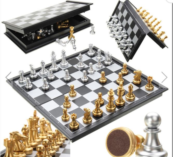 Chess Game Silver Gold Pieces Folding Magnetic Foldable Board Contemporary Set