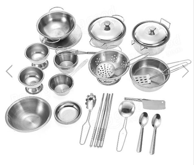 ENPEI 32PCS Kitchen Pan Pot Dish MIni Stainless Kitchenware Play Set Child Kids Role Play Toy Gift