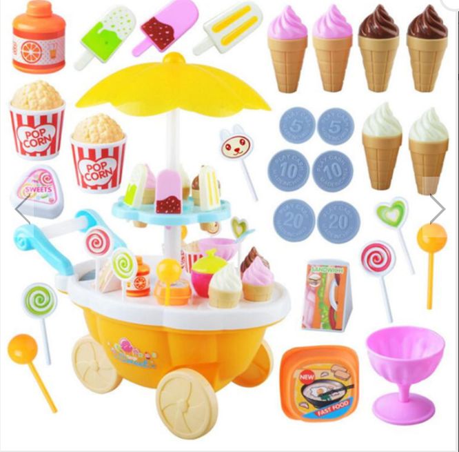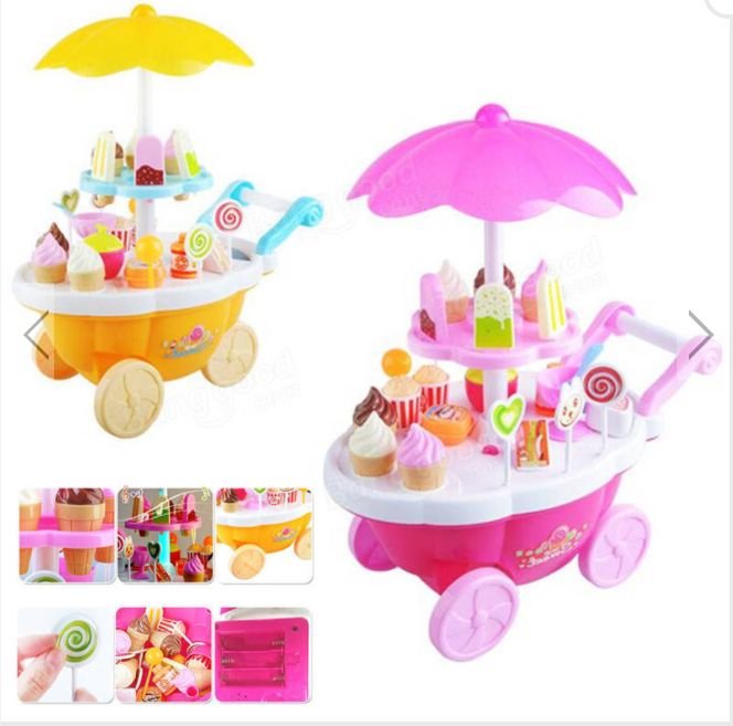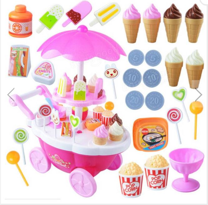 39pcs Cute Kid Pretend Candy&Ice Cream Cart with Lights&Sounds Toy Gift Pink Developmental Toy
