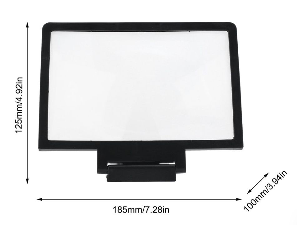 Features: Adopt HD zoom optical technology, no battery needed. Compact size and lightweight, easy to carry especially suitable for watching 3D movies and 3D effect is stronger. Relieve your eyes from uncomfortable and tired feelings when in a long time watching. Great for elders to read newspaper in the watch the news on the Internet as a magnifying glass. Type: Phone Screen Amplifier Material: Plastic + 3D Lens Size: 18cm x 15cm/7.09" x 5.91" (Approx.) Screen Size: 8.2" Notes: Due to the light and screen setting difference, the item's color may be slightly different from the pictures. Please allow slight dimension difference due to different manual measurement. Please avoid using in direct sunlight or strong light, avoid light cause is not clear, it will display better in the dark light environment. Do not use hard wipe scratch the lens, when not in use, please use a soft cloth to protect the lens. Adjust the distance from mobile phone frame to the lens and angle, adjust the focal length, lens angle, in order to achieve the best view and optimal amplification effect and the best definition. The best watch angle is vertical to the lens, a distance of 0.5 meters it the best watch distance. Because the lens is larger, the mirror slightly reflective phenomenon, please adjust the brightness of the light and the angle of the light. Package Includes: 1 x Phone Screen Magnifying Glass HD Amplifier