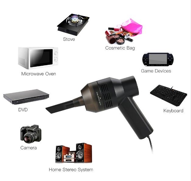 Multifunctional, the mini USB house vacuum cleaner for cleaning computer, TV, stove, microwave oven, camera, printer, cosmetic bag, gaming and home stereo systems and more.