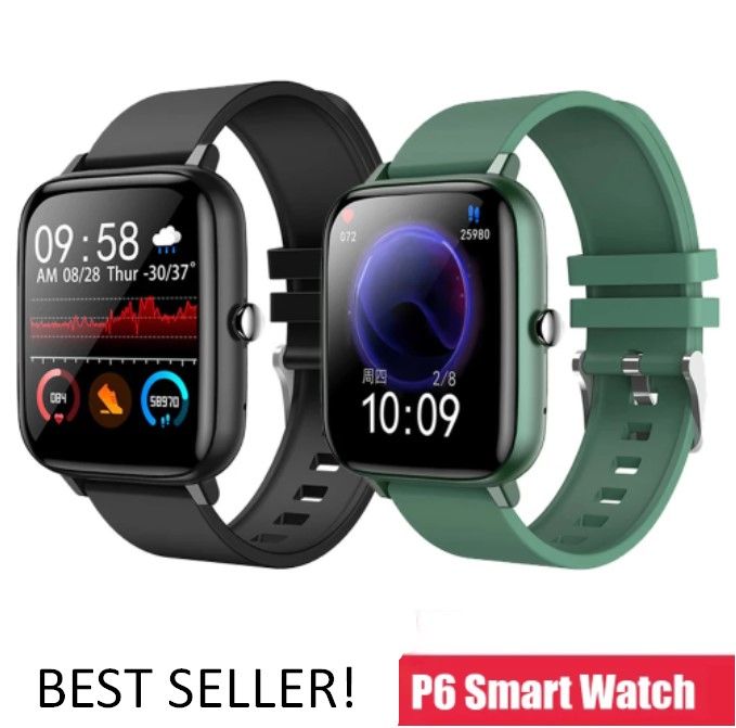 Product Parameters: 1. Model: P6 2. Dimensions: 44*38*11.5mm 3. Screen: TFT 4. Screen size: 1.54inch 5. Resolution: 240*240 6. Chip: SYD8810+FR3029 7. RAM+Flash Memory: 24KB + 256KB 8. Bluetooth: 3.0 / 4.0 9. Battery Capacity: 180mAh 10. Charging Way: charging clip 11. Charging Time: 1.5h 12. Battery Life: 7 days 13. Touch Mode: full touch 14. APP:HryFine 15. System requirements:Android5.0 + / IOS9.0 + Functions: 1. Keep an eye on your health: Heart rate / blood pressure / blood oxygen monitoring, sedentary reminder, sleep tracker. 2. A good helper for workout: Pedometer, distance, calories burned, sports modes. 3. A good helper for daily life: Bluetooth phone calls, control playback of music on phone, sync notifications, incoming calls reminder, alarm, find my device, play music, stopwatch, raise wrist to wake watch, custom watch faces, etc. Languages: App languages: English, Simplified Chinese, Italian, Portuguese, Polish, Spanish, French, Greek, Hungarian, Russian, Turkish, Dutch, German, Vietnamese, Finnish, Ukrainian, Arabic, Persian, Thai. Package List: smart watch*1 charging cable*1 user manual*1 ***We take the right to send a newest version.