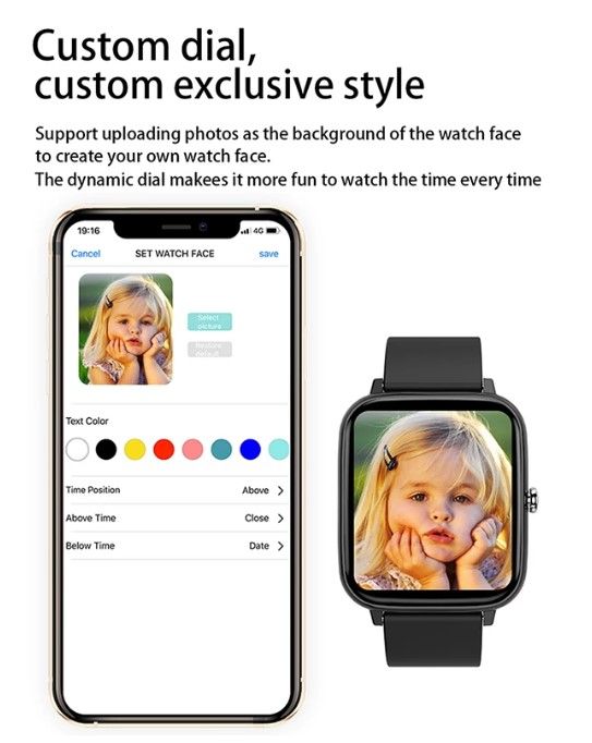 3. A good helper for daily life: Bluetooth phone calls, control playback of music on phone, sync notifications, incoming calls reminder, alarm, find my device, play music, stopwatch, raise wrist to wake watch, custom watch faces, etc.