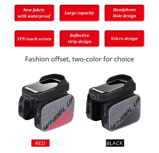 Product Details: Brand:Wheel-up Name:Bicycle Bag Size: 6.0 inch Material: linen fabric Colour:Black,red Features: Reflective strips can help you have more safe riding Patented exterior design, more fitting to bike