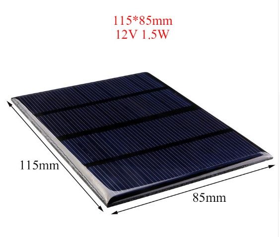 Universal 12V 1.5W Solar Panel Standard Epoxy Polycrystalline Silicon DIY Battery Power Charge Module 115x85mm Mini Solar Cell Features: 12V 1.5W Solar Panel High conversion rate, high efficiency output Excellent weak light effect Suitable for charging cellphone and small DC batteries Build your DIY powered models, solar display , solar light and solar toys, etc Power: 1.5W Voltage: 12V Material:Polycrystalline Size: 115x85mm Weight: 38g Package Contents: 1 x Solar Panel