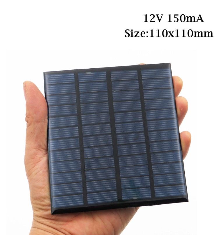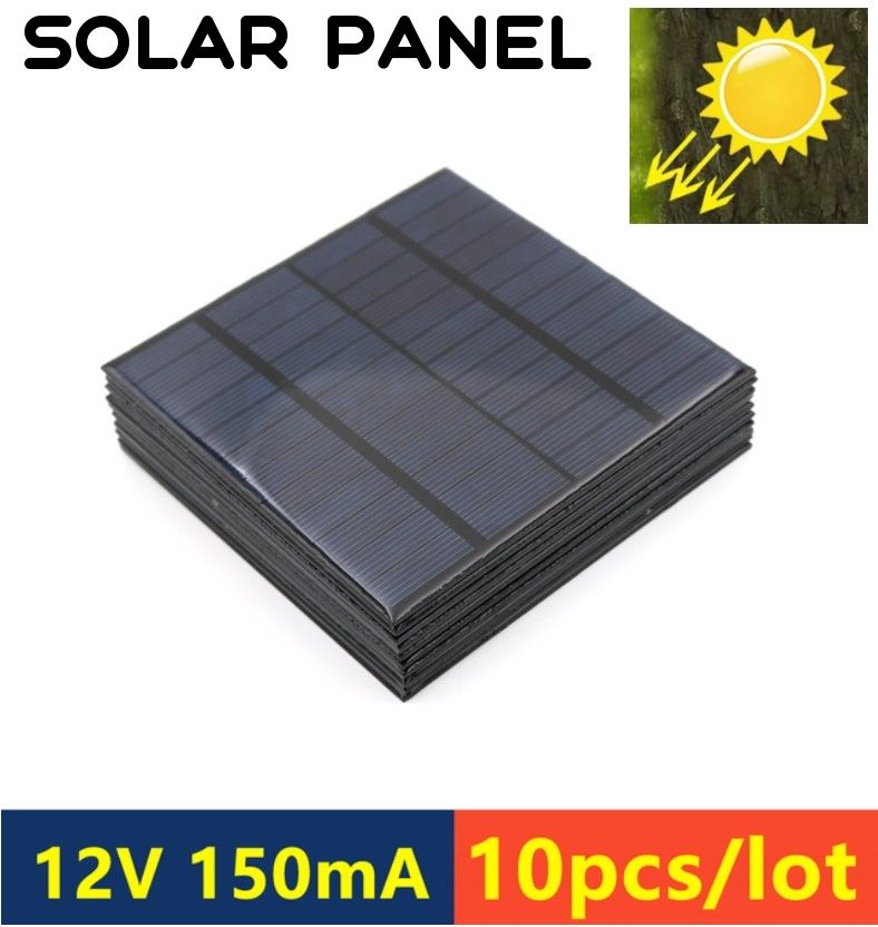 Standard Epoxy Polycrystalline Silicon DIY Battery Power Charge Module The product has high conversion rate and high efficiency output High quality with high light transmittance and unique technology make components beautiful and strong against wind and snow. It is easy to install and adopt specific technology to avoid freezing and deformation of the water in the frame. It is mainly applied to solar courtyard lighting, small household lighting street lighting equipment. It can also be applied to household low power appliances and DIY toys power supply, etc. Suitable for charging cellphone and small DC batteries Build your DIY powered models, solar display , solar light and solar toys, etc Product Specification: Color: Black Material: polysilicon +pet Power: 1.8W Voltage: 12V Material: Polycrystalline Size: 110x110mm Package Contents: 10 x Solar Panel