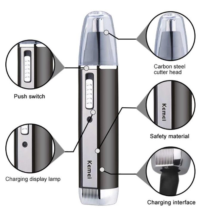 Features 1.All in 1 trimmer set, contains several cutter heads, they can be removable and washable, easy to clean, more hygienic. 2.Sharp cutter heads, made of Japanese 440c stainless steel, safe and fast cutting without hurt the skin, and no hair get stuck. 3.Nose/ear trimmer: it can be used for removing unwanted nose/ear hair. 4.Sideburns trimmer: it can be used for trimming mustache and sideburns. 5.Eyebrow trimmer: it can be used for trimming eyebrow hair and creating a beautiful eyebrow shape. 6.USB charging design, it can be charged through the computer, car charger, portable power and any powered USB port. 7.Built-in rechargeable battery, after 8 hours full charge, it can be used continuously for 60 minutes. 8.Suitable for both men and women. Specification Material: ABS + Aluminum alloy + Stainless steel Voltage: 5V Power: 3W Charging method: USB charging Charging time: 8 hours Operation time: 60 minutes Charging indicator: Yes Size: 13x2cm(Height*Diameter) Package Content 1 x Hair Trimmer 3 x Replaceable Trimmer Head 1 x USB charging cable 1 x Cleaning brush 1 x User manual