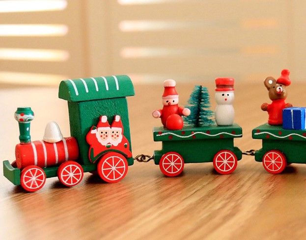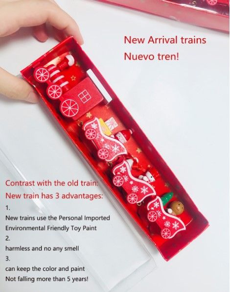 2018 Christmas Painted Wood Train Christmas Decoration for home with Santa/bear Xmas kid toys gift ornament navidad new year Christmas Party decoration supply 100% Brand new and high quality, Material: High quality wood + environmental paint Size: four sections:21x5x3cm Content: 1pcs Cute trains for Christmas gifts to kids. Delicated decoration for Christmas