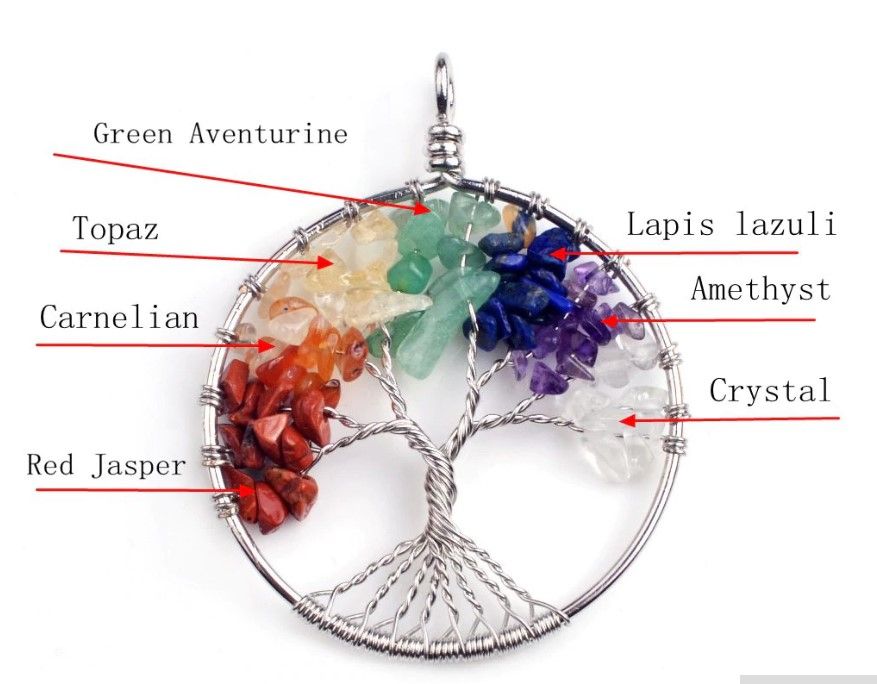 Style: Multicolor Chakra Natural Stone Pendant Christmas Tree Pendant Necklace