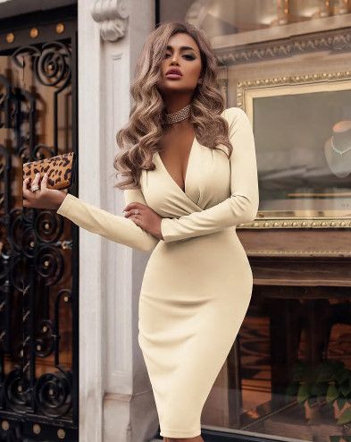 Gender: Women Sleeve Style: Regular Silhouette: Sheath Neckline: V-Neck Waistline: Natural Material: Polyester,Cotton Sleeve Length(cm): Full Season: Spring Dresses Length: Knee-Length Decoration: None Pattern Type: Solid