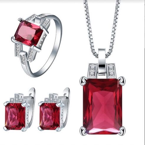 Metals Type: Copper Jewelry Sets Type: Necklace/Earrings/Ring Style: Classic Gender: Women,Girls,Men,Unisex,lovers' Material: Crystal Occasion: Engagement Included Additional Item Description: necklace*1pcs,earrings*1pair,Ring*1pair Shape\pattern: Geometric is_customized: Yes Fine or Fashion: Fashion Item Type: Jewelry Sets weight: 33g color: rose gold Occasion: Party,wedding,engagement,Christmas Gift Length: 50cm Style: Fashion Romantic Bohemia Main stone: red crystal,blue crystal,green crystal,white crystal