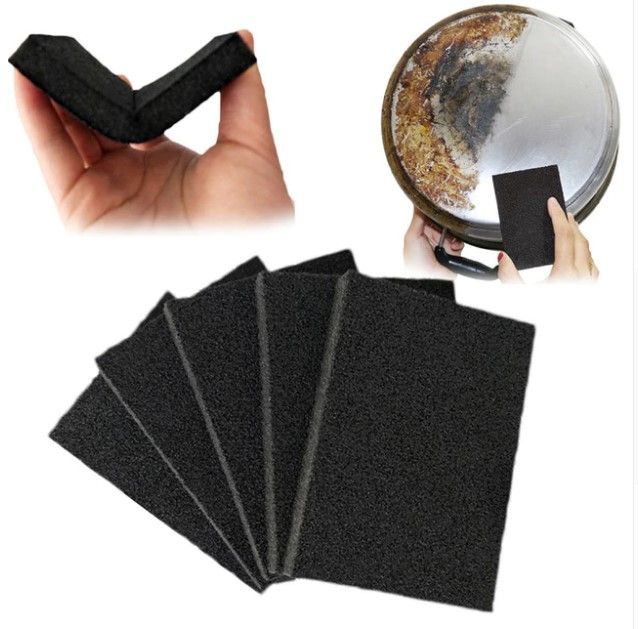 Upgraded version of the fifth generation of Emery sponge. The sand layer is thicker, with less sand and longer life; Imported environmentally friendly glue, safe and reliable use, high density, wear-resistant, pot descaling, no damage to utensils; High cleanliness, physical friction, health and environmental protection; wide use, brush pot, wiping board, grinding tools, etc.; toughness, not easy to break, tough and durable Strong decontamination ability, can effectively remove the stubborn stains on the pot to make the pot a new look, use the sponge to wet before use. Emery surface has large friction, wear-resisting and durable, environmentally-friendly glue is firm and does not degumming, and sponge has strong water absorption. Specifications: Quick and clean without scratches, no scratches, comfortable and easy to maintain shape, even with a small amount of detergent can easily foam. High-density sponge with good resilience and deformation. Antibacterial sponge kitchen. Disinfect and reuse in the dishwasher! Our four-sided sponges use high-quality viscose for superior scratch-free cleaning, up to 50% longer than traditional cleaning sponges. It is easier to remove all kinds of hard scales and is widely used in kitchens, bathrooms, garages, outdoor dishes, basins, cars, glass, tables, wash basins, etc. Material:Sponge, Nano Emery Color: black Size:10*7*1.2cm Weight:12g Package Included: Sponge*5