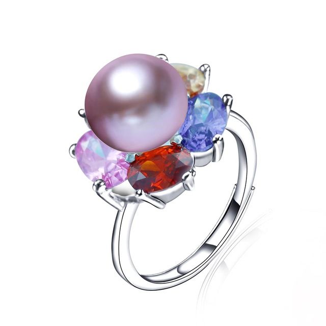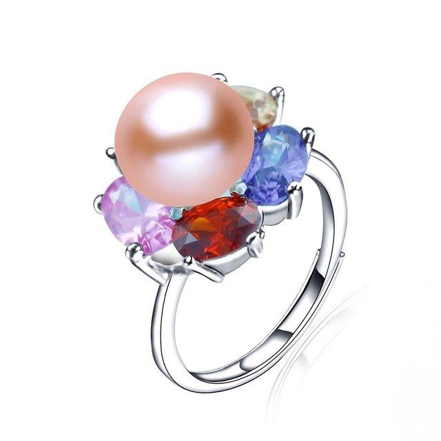 Multi Color Zircon Genuine Natural Freshwater Pearl Adjustable Sterling Silver Women Ring Fine or Fashion: Fine Item Type: Rings Pearl Type: Freshwater Pearls Metals Type: Silver Style: Trendy Shape/pattern: Plant Certificate Number: . Occasion: Wedding Rings Type: Wedding Bands Setting Type: Bar Setting is_customized: Yes Pearl Shape: Semi-round Model Number: . Side Stone: Other Natural Material Main Stone: Pearl Gender: Women Metal Stamp: 925,Sterling CertificateType: CNAS Size Per Pearl: 10-11mm Package: 1 x Multi Color Zircon Genuine Natural Freshwater Pearl Adjustable Sterling Silver Women Ring