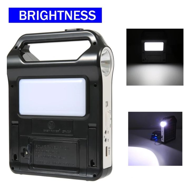 Features: 1. The reusable solar generator can charge solar energy, is environmentally friendly and energy-saving, and can be used in sunny places. 2. You can use the built-in large-capacity battery to easily charge electronic products, and you can also charge mobile phones, MP3, MP4, digital cameras and other electronic products. 3. White light LED lighting and lighting, low power consumption, higher brightness, more durable to use, constant current integrated circuit driver, good stability. 4. Very suitable for indoor lighting, outdoor lighting, power outages, camping, home lighting and areas without electricity. 5. Equipped with radio function. Specification: Material: ABS Input voltage: 220V Output voltage: 3 / 5V Battery capacity: 2400mAh Emergency light working hours: 10 am to 12 pm Output power: 15W Frequency: 50-60Hz Output current: 3A Solar panel: 6V / 2W Size: 205 * 150 * 50mm Packing included: 1 x solar power generator Note: 1. Please allow 1-3cm (0.4-1.18") difference due to manual measurement and slight color variation for different display setting. 2. Due to the light and screen difference, the item's color may be slightly different from the pictures. Please understand.