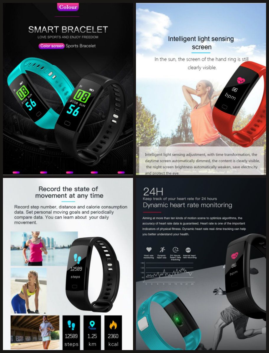 Hot Y5 Smart Wristband Sleep Tracker Watch Color Screen Electronics Fitness Tracker Bracelet Heart Rate Monitor PK mi band 3 2 Key features: • Heart rate monitor • Blood pressure monitor • Blood oxygen monitor • Sleep monitor • Pedometer • Distance • Calories • Sport mode • Sedentary reminder • Call reminder • Alarm clock Specifications: • Model: Y5 • Color: Black, light blue, dark blue, purple, red • Compatible OS: Android 5.1, iOS 8.0 or above • Operating mode: Single touch • Bluetooth version: 4.0 • APP language: Chinese, English, Japanese, Korean, French, German, Russian, Polish, Spanish • Size: 40.4 x 20.1 x 10.5 mm (1.59 x 0.79 x 0.41 in) • APP: JYOU • Screen size: 0.96-inch color screen • Battery capacity: 90 mAh • Band material: Stainless steel + TPU • Length: 120 – 210 mm (4.72 - 8.27 in) Note: Wearable devices monitors human activities through electronic sensors,and they are at the consumer electuonics level.It's normal for certain deviation.The user should treat data objectively. Please do not compared to hospital equipment about reading,it is NOT a medical device ! Before using, scan the QR code on the manual to download the app and connect it to the watch with APP.