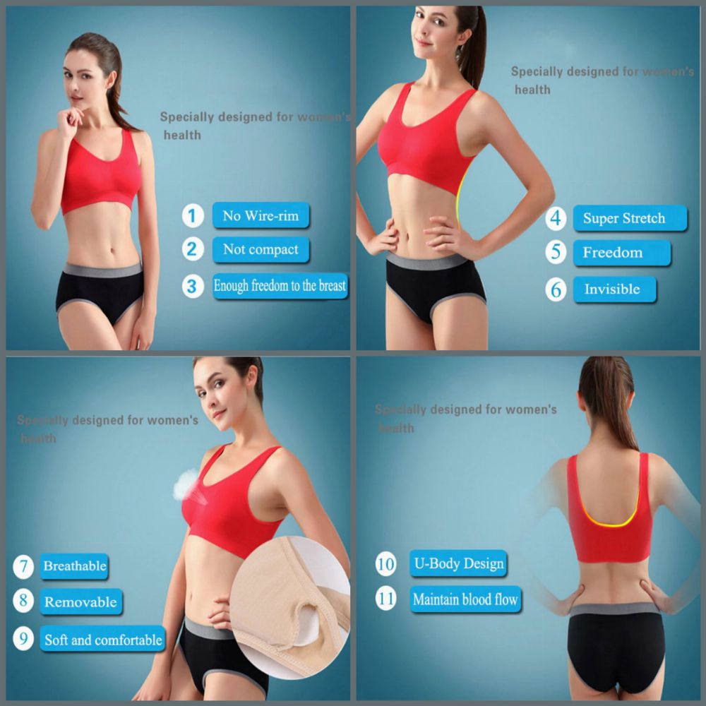 Features: Super Elastic,Seamless,breathable, No-Wire rims, Chest pad is removable.