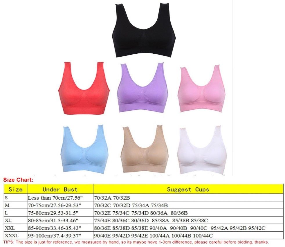 NEW Womens Sport Bra Fitness Yoga Running Vest Underwear Padded Crop Tops Underwear 7 Colors No Wire-rim Bras Female Product description: Note: 100% brand new and high quality Features: Super Elastic,Seamless,breathable, No-Wire rims, Chest pad is removable. Material: Polyamide / Nylon 7 Colors (Choose your Favorite): Red, White, Black, Light Purple, Light Pink, Light Blue, Beige In the package: 1 x Women's Sports Bra