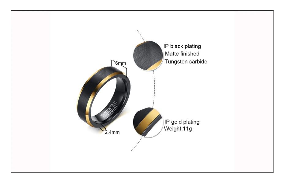 Black Gold Color Tungsten Ring for Men Perfect for Engagement Ring and wedding rings gift. Rings are Matte Brushed Band USA Size 8 to 12 1.Material :316l stainless steel ,highly resisted to rust, corrosion and tarnishing. 2.Artificial manual polishing,detail decides the quality. 3..Size 8 9 10 11 12