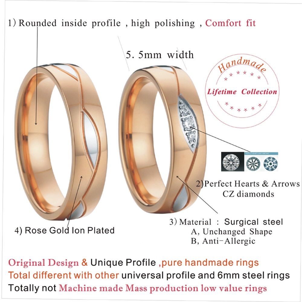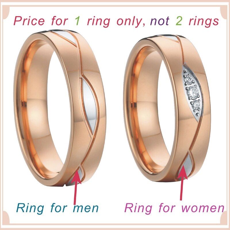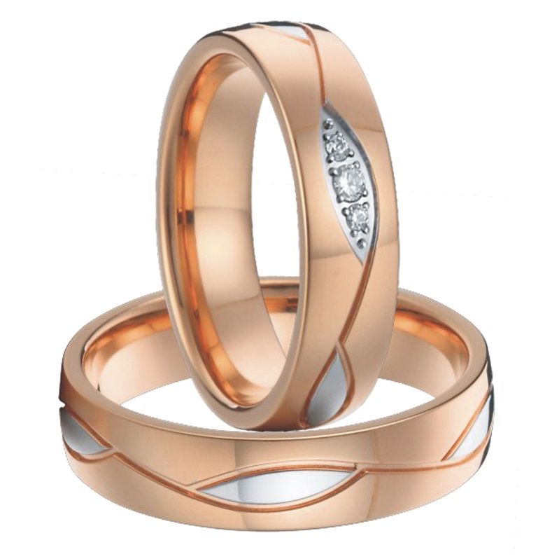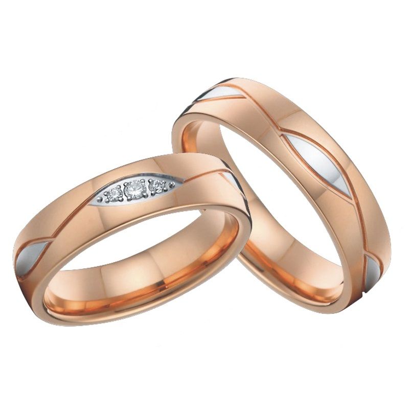 Stainless Steel Couple Cubic Zirconia Wedding Bands Rose Gold Color