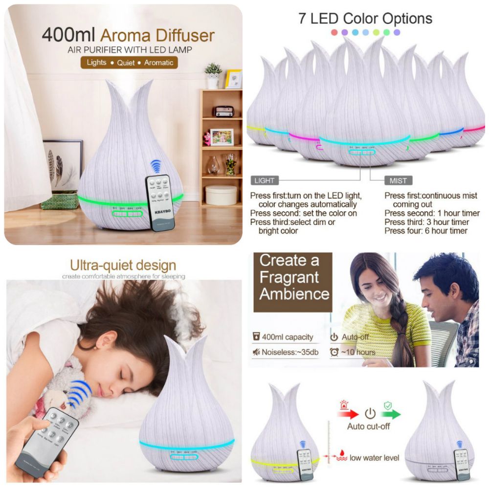 Feared at flu and cold? Do not hesitate to improve your breathing and strengthen the immune system by owning an 400ML essential oil diffuser.