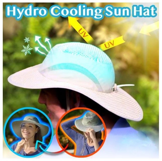 Tired of the harsh rays of the sun beating down on you? Our revolutionary Hydro Cooling Sun Hat has a built-in UV barrier that reflects 80% of the sun's heat and 99% of the damaging UV rays, also keeps you up to 20 degrees cooler.
