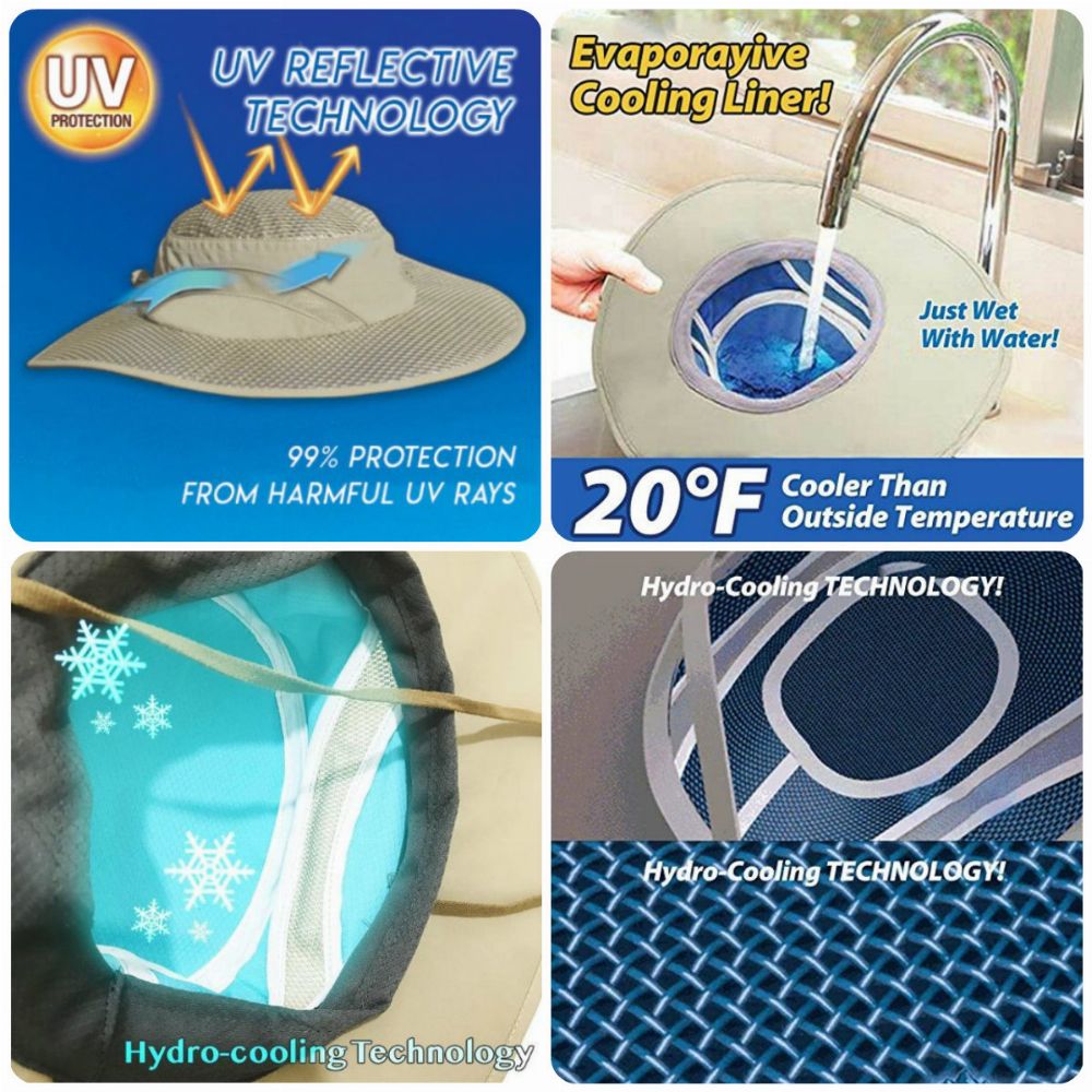 The secret is the evaporative cooling inner liner, which is an advanced hydro-cooling technology. Simply wet the evaporative lining and put on the sun hat, you can get an instant cooling effect and stay comfortable through the day.