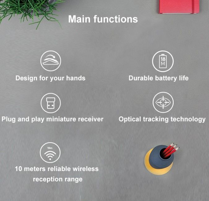 Descriptions: 2.4GHz wireless transmission up to 25 meters operating distance Built-In mouse memory, no recording is needed after battery replacement Intelligent connectivity, no need to code, plug-and-play Ergonomically designed, comfort grip Many dormant class control and more power-saving hibernation connectionless 1000dpi, cursor more speedy and precisely With On/Off power switch,1AA battery last for 1 year Low power comsumption, the service life of one AA Alkaline battery is up to six months Low voltage alarm function Plug-and-forget tiny nano-receiver stays in your USB port so your mouse is always ready to use Decent and modern design High quality, with one year warranty Ideal laptop companion for home and office use. Package Contents: 1 * Mouse 1 * Nano Receiver 1 * Instructions 1 * AA battery ( not included,PLS NOTE)