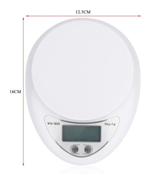 Specification: 5kgx1g Digital Electronic Weighing Scale This is a digital scale. Max weighing capacity: 5Kg. Unit Key: Unit exchange (g, oz, lb) LCD Display. Simple operation Automatic shut off Power by: 2 x AAA Battery (Not included) Size:16x12x3.5cm(LxWxT) Package Included: 1 x 5kgx1g/1kgx0.1g Kitchen Weight Scale 1 x English Instruction Manual