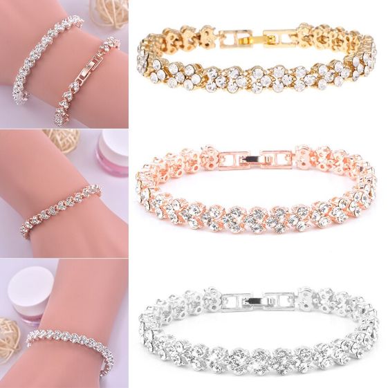 Features: 1.Style:elegant bracelet roman style crystal diamond bracelets gifts,eye catching arm wrap jewelry for you. 2.Occasion:easy to match with everyday outfits,suitable for party,bar,beach,wedding,show,prom. 3.Gift package making it perfect for all gift giving occasions like Birthday,Christmas,Anniversary,Thanksgiving,Newyear's Day or just a surprise gift for your girls,daughter,granddaughter,sisters,friends. Material:Rhinestone+Zinc alloy Bracelets Type: Chain & Link Bracelets Setting Type: Prong Setting Clasp Type: Lobster-claw-clasps Shape\pattern: Round Colors: Gold,Silver,Rose gold Size: 16.5*0.7cm