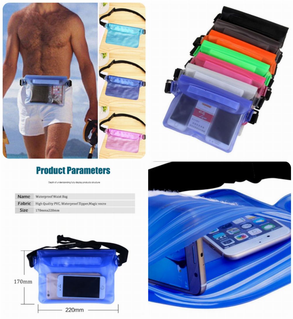 Waist Bag Size:17*22cm 100% Waterproof: protect your phone or camera from the water, dust, sand, raindrops. Waterproof depth:10m underwater Type: Higher Price with Touchscreen Function(Strap Length tiled:81cm,total length:86cm) Color: The color is not transparent effect as picture showed,the selected picture just for color show!! Package: 1Pcs* Waterproof waist bag Note:When you are going to use it,you'd better to have a test with a paper in it to check out waterproof index before use,Pls make sure its safety!!