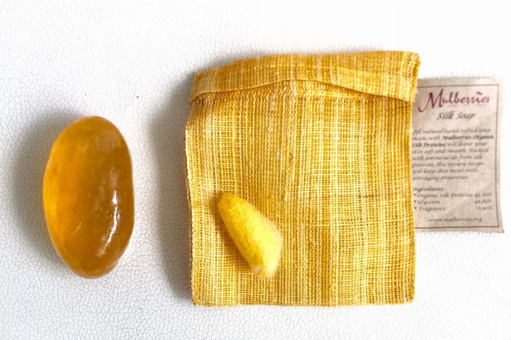 All natural Silk Protein Soap is made from the protein extracted from the Raw Silk Cocoon. Include raw silk bag.