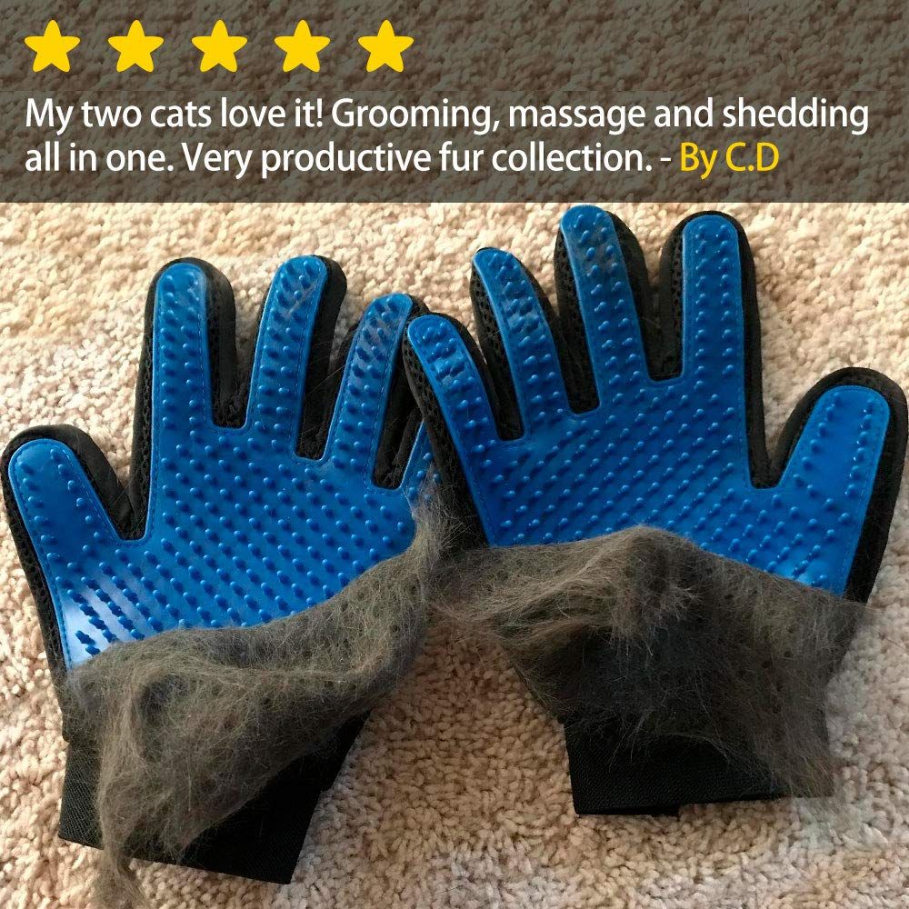 Hair Remover: Perfect for long, short and curly haired dogs, cats, horses, and other pets, grooming the hair quickly, gently and effectively; The shedding hair sticks to the glove, making it easy to peel and throw hair away