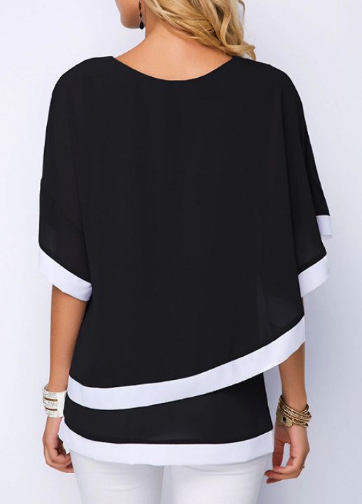 100% Brand New! Item Type: Women Blouse Style: Casual Fabric Type: Chiffon Blouse Length: Regular Collar: O-Neck Sleeve Length(cm): Half Sleeve Style: Batwing Sleeve Pattern Type: Patchwork Color: Black Size: S-5XL Package Content: 1 X Women Blouse