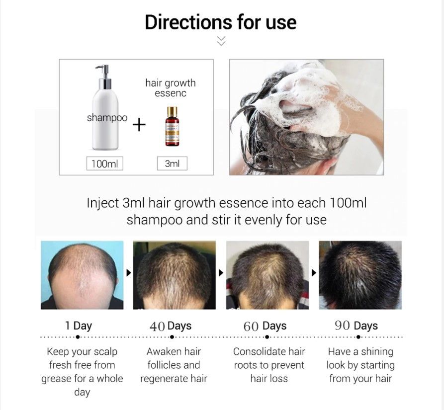 2. Spray Hair Growth Spray to the root of hair evenly, Two times a day(morning and evening), spray 1ml in one time, (spray 5-6 times) Increase or reduce the dosage according to the specific condition